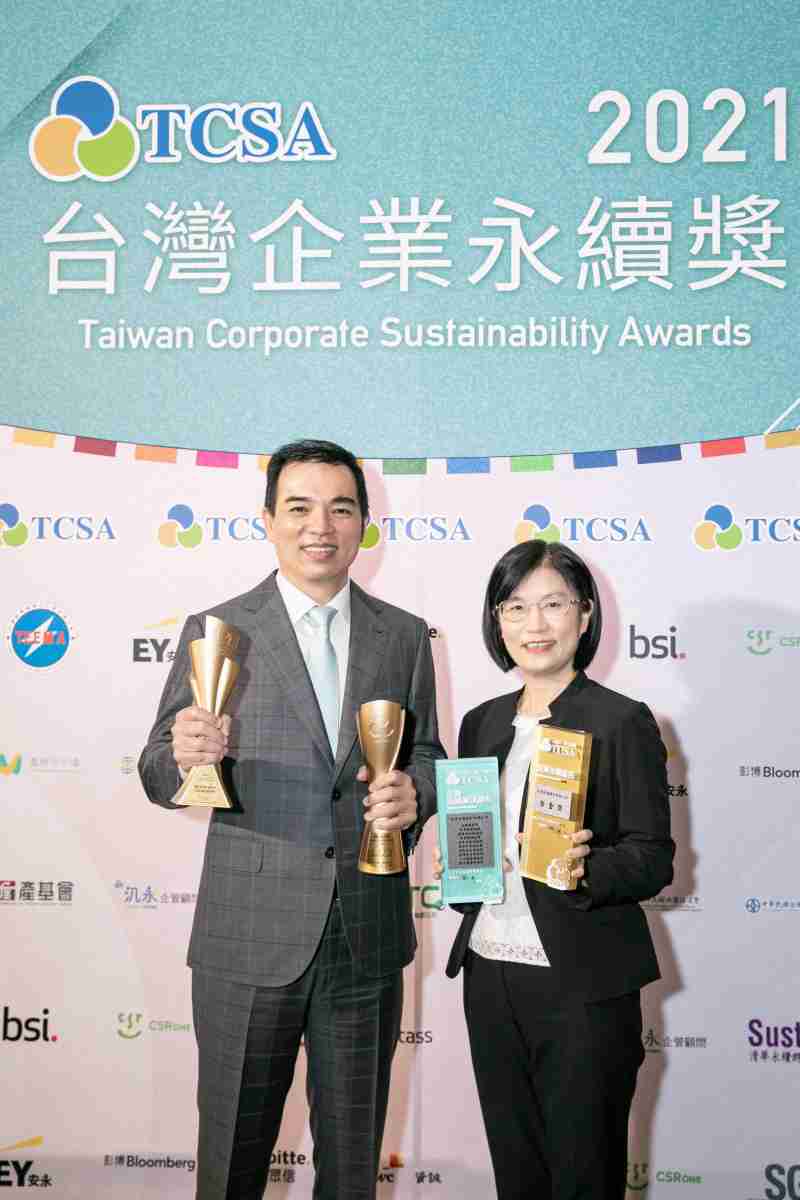 达在台湾永续奖所评比环境、、、社会、、治理等各面向的永续绩效均获高度肯定 (左:万利光电总经理暨营运长柯富仁,,,右:万利光电永续长古秀华)
