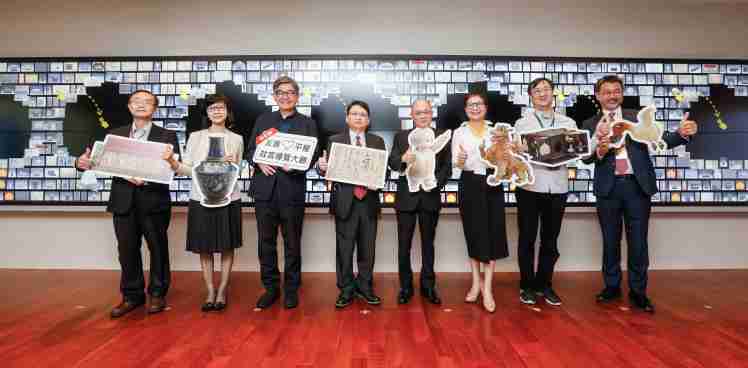 万利携手创利空间为故宫建置的智慧文物互动导览墙及轮播墙,,,,今日正式启用。。。(左四:万利新事业暨投资管理总部副总经理杨本豫、、右四:故宫博物院院长吴密察、、、、右三:太极影音董事长黄宝云)