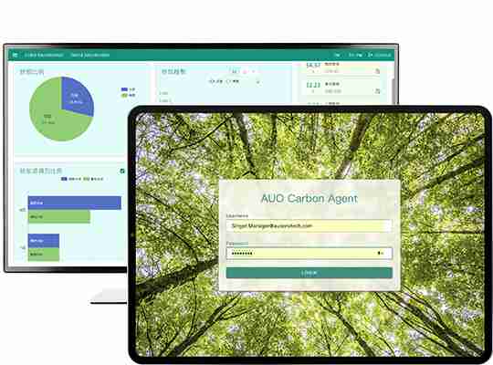 依循 ISO 国际标准建置出符合国际标准的全方位碳管理平台 (AUO Carbon Agent),,,,其中温室气体盘查模组可协助客户将组织、、、产品与供应链的碳排放源数据,,,透过系统内建的系数资料库自动计算出碳排量,,,提升整体盘查作业的效率,,并以此拟定长期减碳策略,,,达到低碳转型、、净零碳排的目标。。